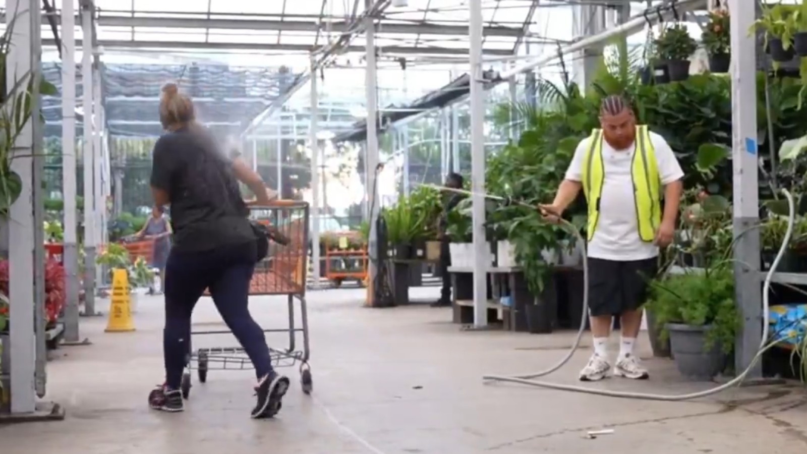 Konvy, who was broadcasting it all live on Kick, captured one of the group members pretending to work at the shop in Miami, Florida. This group member then turned their water hose on an innocent shopper, continuously spraying them for multiple seconds, and then doing it again.