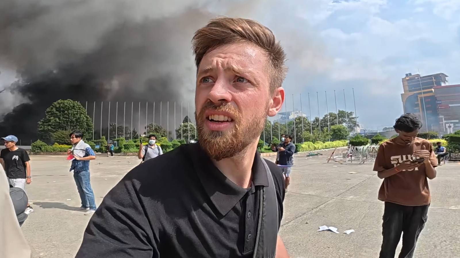 In his first viral video, the creator moves with crowds as police fire tear gas and demonstrators push through barricades toward government compounds. He tells viewers “I should not be here” and later, “for the first time in my life, I’ve just experienced tear gas,” while nearby voices repeat “Parliament is burning” as plumes of smoke rise over the city. Between clashes, locals offer him water and urge him to stay safe, a moment he describes as “the humanity still remains even though there’s chaos that way.”