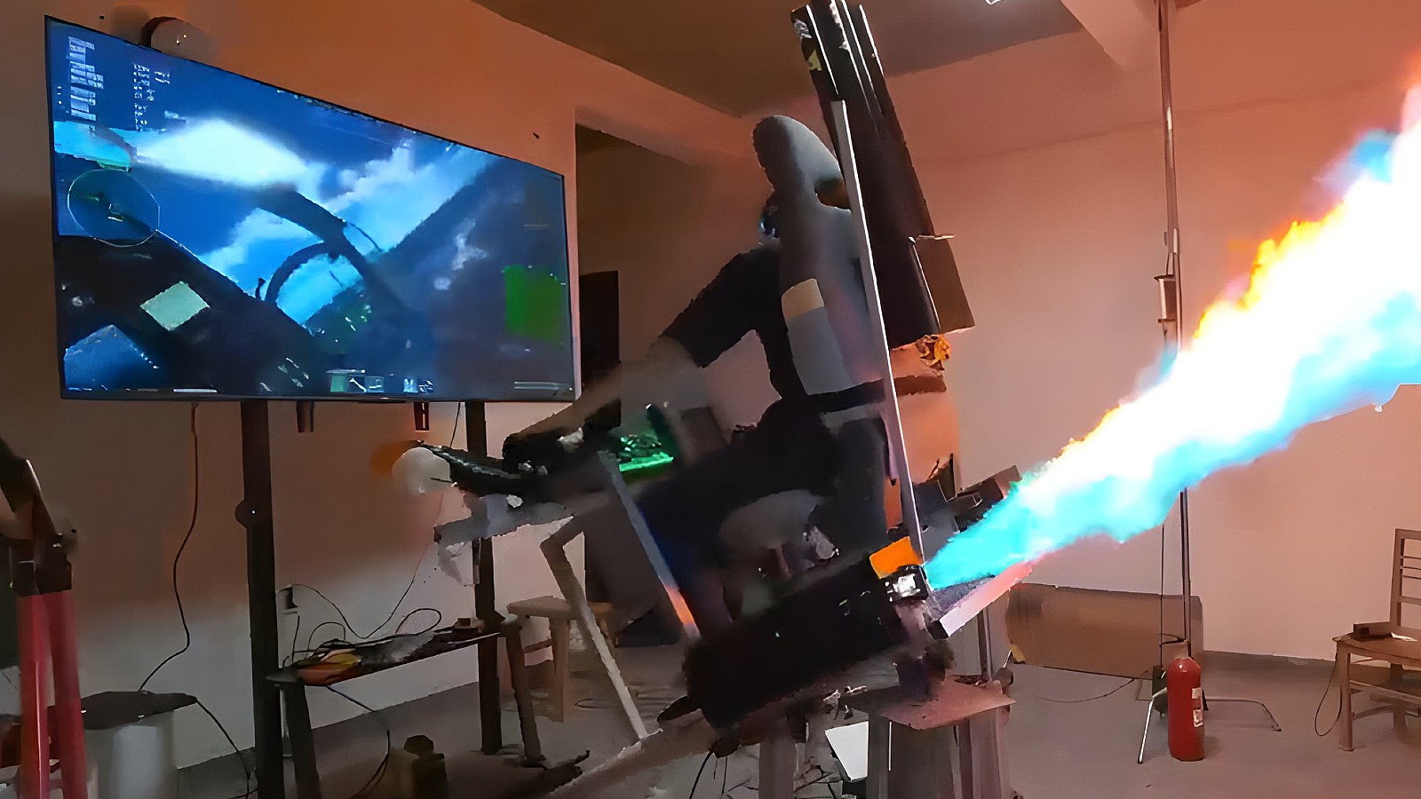 Originally posted on Bilibili and later shared to Reddit, the custom-built setup features a motion-enabled seat, synced exhaust flame effects, mock weapons, and haptic responses to in-game actions that undoubtedly ignore safety guidelines adhered to by traditional controllers.