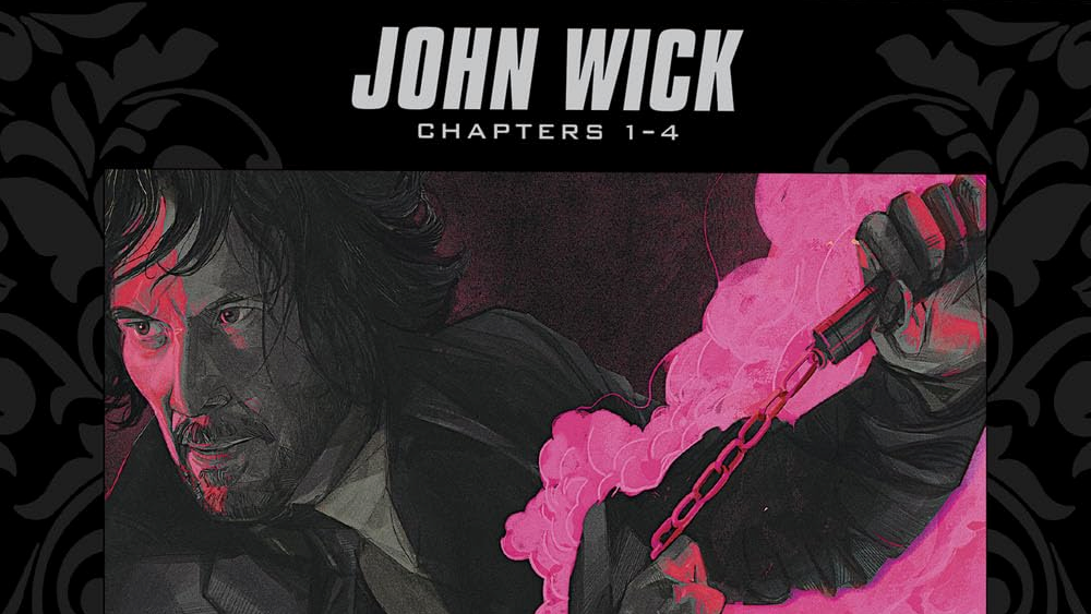 John Wick: Chapters 1-4 Collection is an eight-disc set with 1080p Blu-ray and DVD versions of all four mainline films. It also comes with four art cards with pretty awesome character art. The cardboard slipcase has a window frame, allowing you to switch between the four pieces of artwork for display.