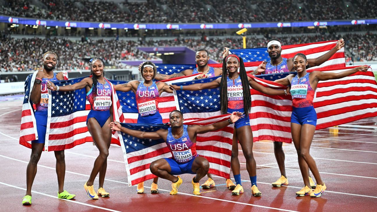The U.S. won gold medals in both the women’s and men’s 4×100 relays to close out the world championships in Tokyo. Mustafa Yalcin/Anadolu via Getty Images
