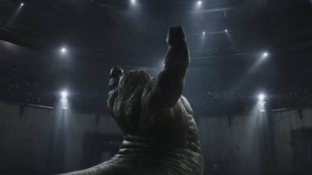 The intervening 30 years (and death of his father) have apparently been kind to Rotta: the trailer for the movie only gives us a brief, back-facing look at the Hutt as he roars before a screaming crowd in a combat arena, but he’s clearly trimmer and more muscularly defined compared to the typically presented Hutt body type.