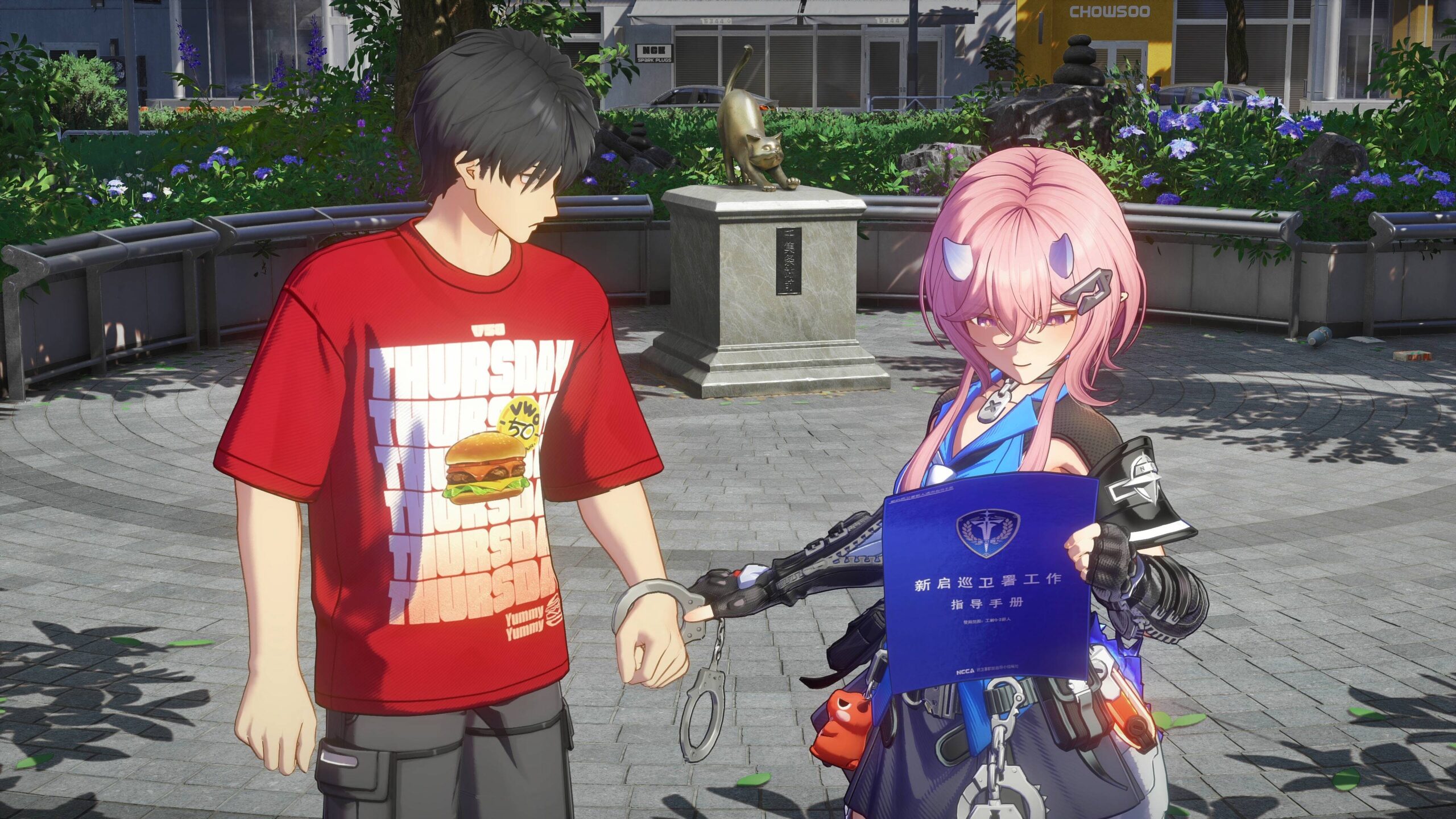 In its free roam mode, Ananta let me pull up a phone interface to swap between characters, triggering a straight-outta-GTA-5 camera swoop up into the sky and back down into the part of the city where they’re currently hanging out. I only played as Lykaia for a couple minutes before my demo was up, but as a police officer she can scan NPCs against a database, frisk them for weapons, issue citations, and handcuff them, triggering reactions and dialogue you wouldn’t otherwise see.