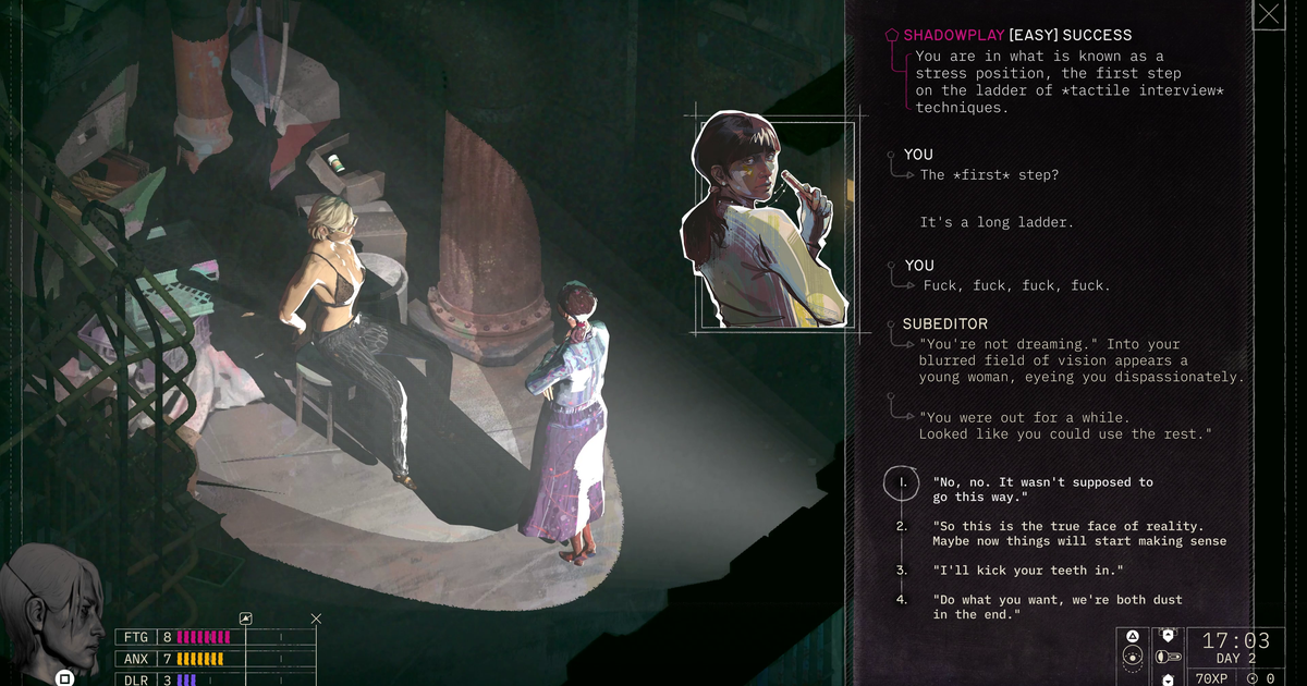 Many of the departed Disco Elysium staff are now working on spiritual successors of one kind or another. Over at Summer Eternal, several former ZA/UM staff including writers Argo Tuulik and Dora Klindžić are making Red Rooster, which was recently teased in curious book anthology form. Longdue Games are making Hopetown, a psychogeogratuitous RPG which Nic summarised as “Nathan Barley on the bus”; their trueblood Disco complement includes ZA/UM’s co-founder Martin Luiga, plus Piotr Sobolewski from outsourcing team Knights of Unity. Dark Math Games boast of former Disco motion graphic designer Timo Albert and former ZA/UM producer and investor Kaur Kender; they’re making the recently renamed Tangerine Antarctic, which has a “dopamine buffet”.
